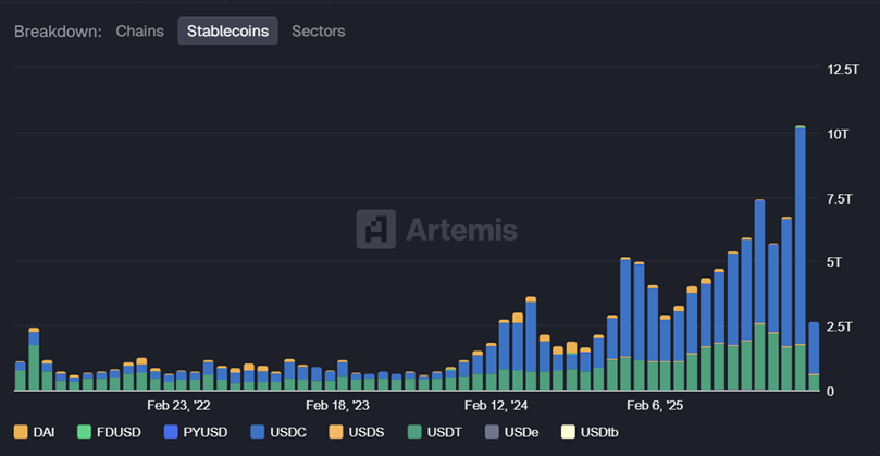 Stablecoin transaction volume growth (Source: Artemis Analytics) Stablecoins | Artemis Terminal
